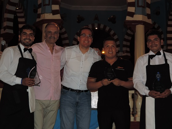 Benjamín Mejía, del Instituto Le Cordon Bleu Perú y Luis Montoya, de la Universidad Le Cordon Bleu, alcanzaron el segundo y tercer puesto respectivamente, en la competencia de preparación del coctel de bandera.